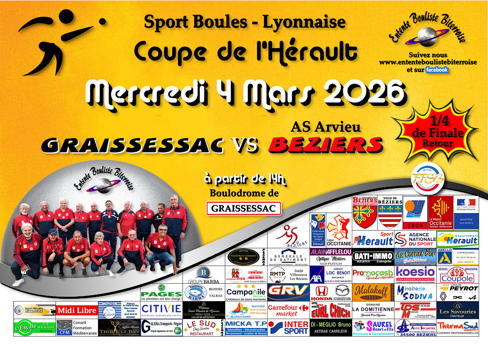 COUPE DE L'HERAULT AS 1/4 DE FINALE (Retour) GRAISSESSAC / BEZIERS 1 A 14H
