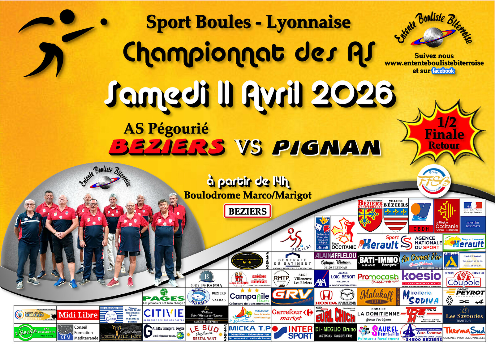 CHAMPIONNAT des AS 1/2 FINALE Retour BEZIERS 2 / PIGNAN A 14H